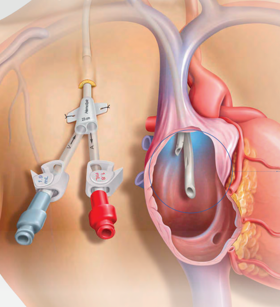 Los catéteres de hemodiálisis son accesos vasculares utilizados para conectar al paciente con la máquina de diálisis, especialmente en casos de inicio urgente del tratamiento o cuando no es posible utilizar una fístula. Se colocan en venas centrales, generalmente en el cuello o la región subclavia, y pueden ser temporales o tunelizados (para uso prolongado).